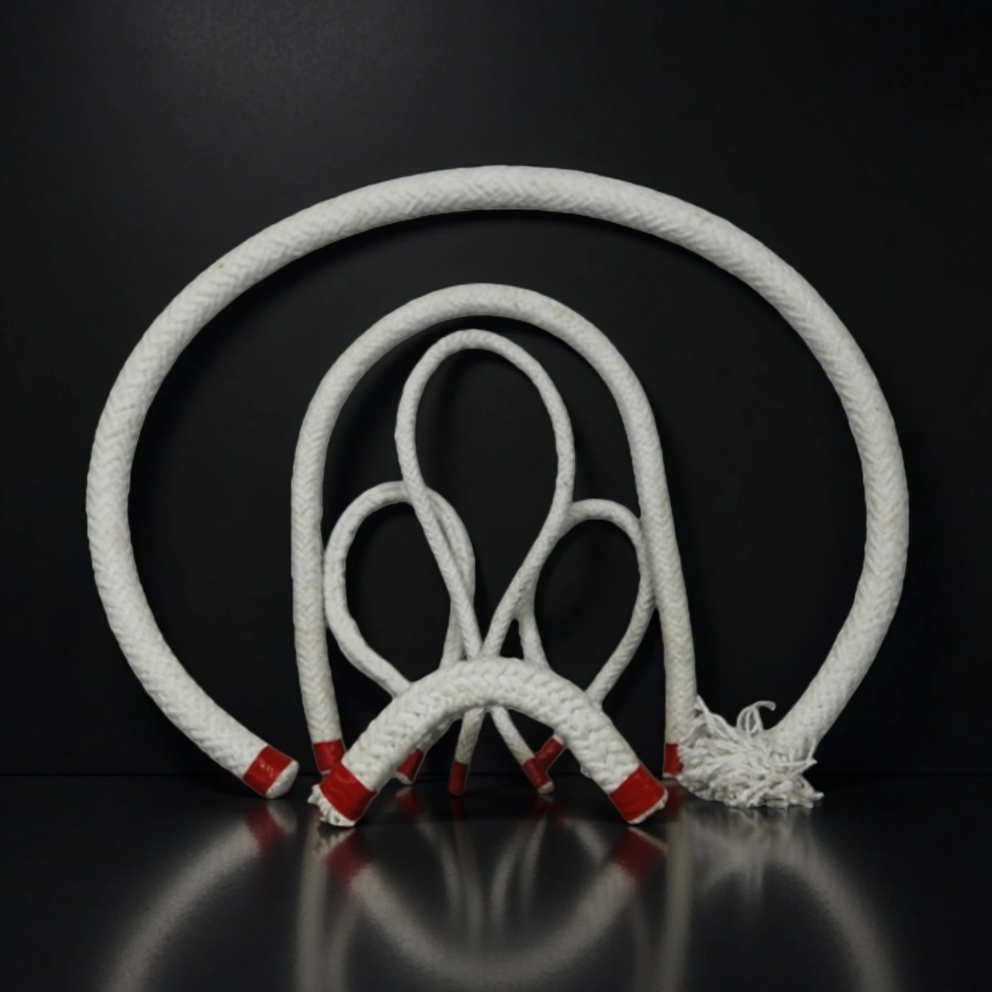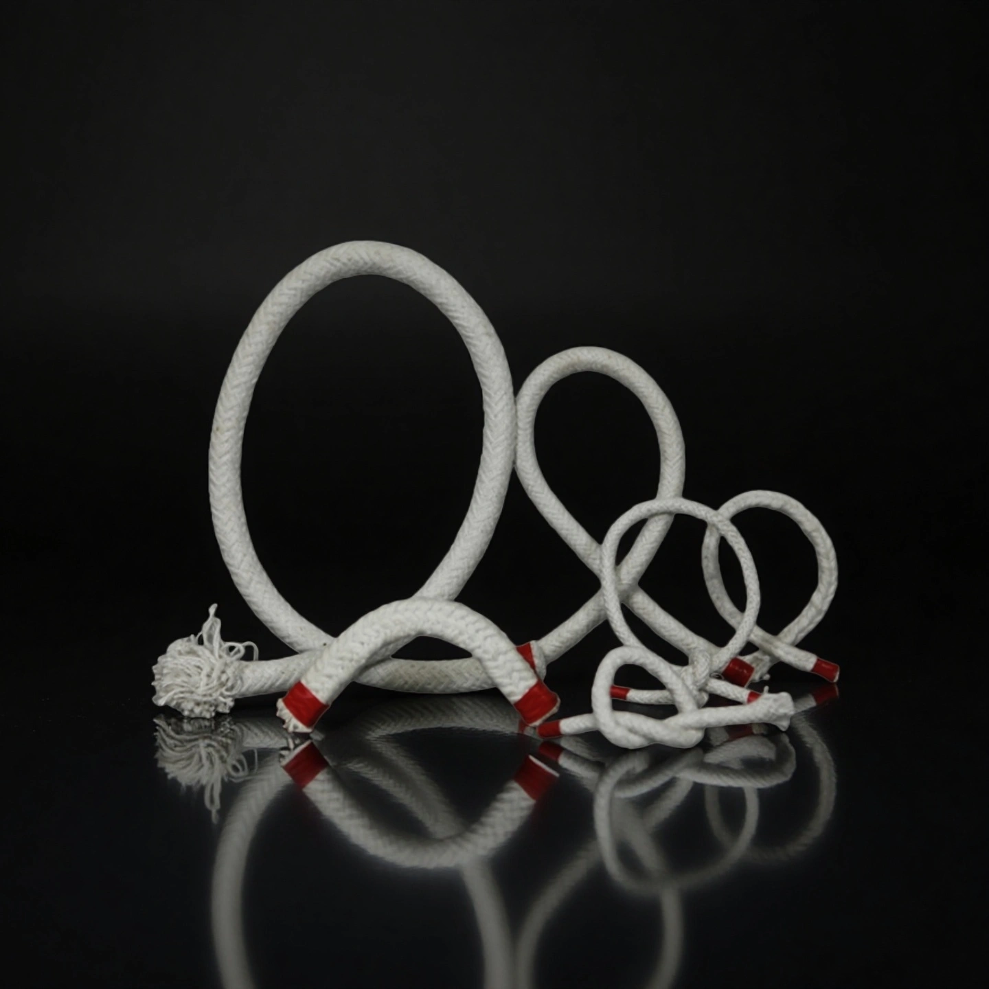 Aluminum silicate fiber rope can be reinforced with glass fiber for lighter duty up to medium temperatures, or with stainless steel wire for higher mechanical load and elevated temperature operation around burner blocks and slag lines. -